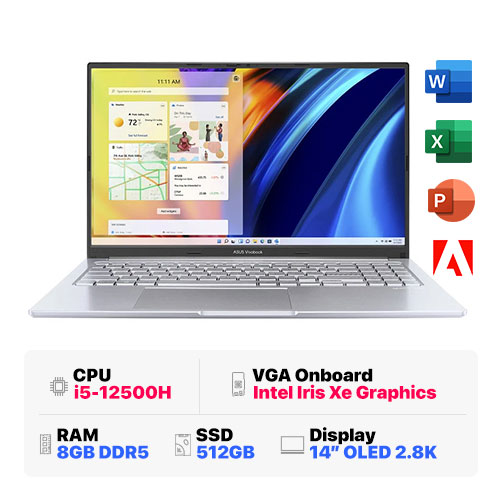 Asus Vivobook 14X OLED A1403ZA-KM065W : i5-12500H | 8GB RAM | 512GB SSD | Intel Iris Xe Graphics | 14 inch 2.8K OLED 90Hz | Finger | Win 11 | Silver