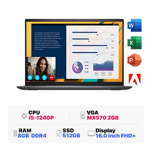 Sở hữu bộ vi xử lý với chip Intel core i5-1240P thuộc thế hệ chip thứ 12 cho 12 nhân 16 luồng với tốc độ xung nhịp lên đến 4.40 GHz, bộ nhớ đệm 12MB cho hiệu năng mạnh , xử lý đa tác vụ mượt mà và trơn tru giúp máy vận hành tốt các nhu cầu lướt web, xem phim, nghe nhạc, xử lý các công việc văn phòng nhanh chóng. Đi kèm với nó là card rời NVIDIA GeForce MX 570 2GB trên laptop Dell giúp máy có khả năng xử lý tốt các tác vụ đồ họa trong Adobe Photoshop, AI,....hay dựng phim trong.