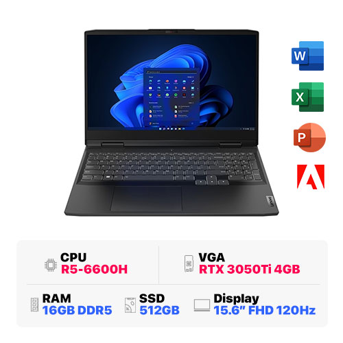 Lenovo IdeaPad Gaming 3 15ARH7 82SB007LVN : R5-6600H | 16GB RAM | 512GB SSD | AMD Radeon Graphics + RTX 3050Ti 4GB | 15.6 inch FHD 120Hz | Windows 11 | Grey