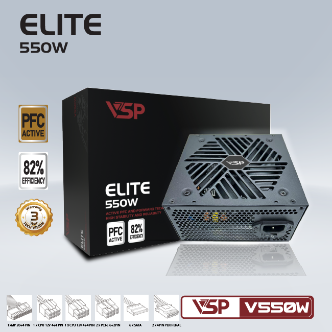 Nguồn máy tính VSP Elite Active PFC V550W Chính Hãng