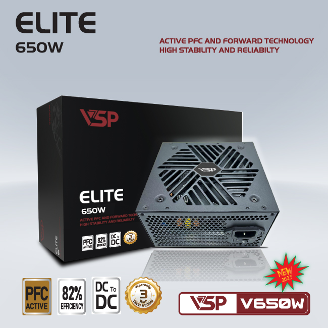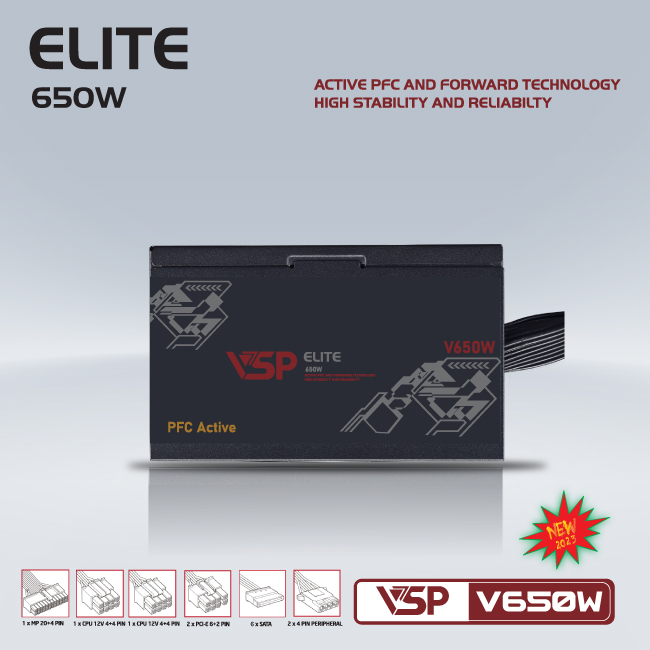 Nguồn máy tính VSP Elite V650W Active PFC Chính Hãng
