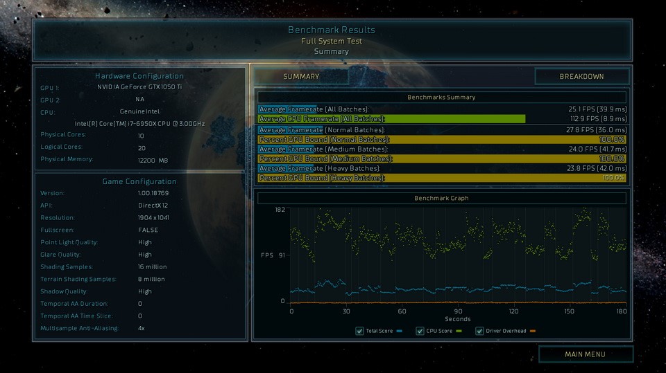 Kết quả bên dưới cho thấy hiệu năng GTX 1050 Ti 4G OC đủ để chinh phục tất cả phép thử theo kịch bản xây dựng ở độ phân giải Full HD với thiết lập đồ họa chất lượng cao chứ chưa đạt mức tối đa như mẫu GTX 960 mình từng thử nghiệm.