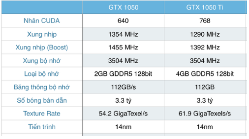 Mình sẽ giới thiệu 1 tí về hiệu năng của 2 card GTX1050 và GTX1050Ti để các bạn tham khảo thêm nhé.